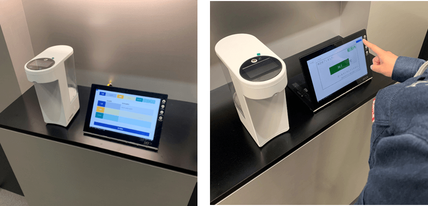 写真:LogiPull受付機能と連携した体温測定・消毒とアンケート回答イメージ